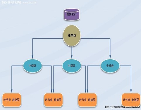 索引中的低層節(jié)點稱為葉節(jié)點。根節(jié)點與葉節(jié)點之間的任何索引級別統(tǒng)稱為中間級。在聚集索引中,葉節(jié)點包含基礎(chǔ)表的數(shù)據(jù)頁。