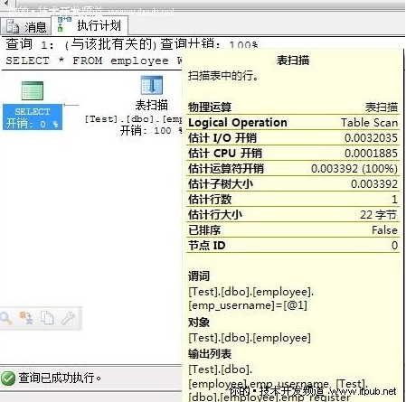 表'employee'。掃描計數(shù)1,邏輯讀取36 次,物理讀取0 次,預(yù)讀0 次,lob 邏輯讀取0 次,lob 物理讀取0 次,lob 預(yù)讀0 次。