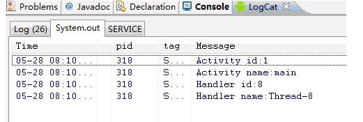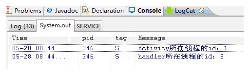 Log.d("System.out", "handler所在線程的id:"+Thread.currentThread().getId());