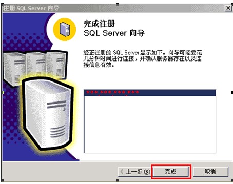完成SQL server 注冊,點擊完成。顯示注冊成功。
