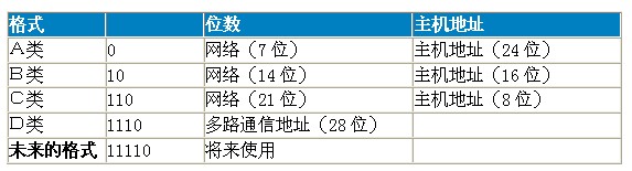 這樣,A類地址空間為0-127,最大網絡數為126,最大主機數為16,777,124;B類地址空間為128-191,最大網絡數為16384,最大主機數為65,534;C類地址空間為192-223,最大網絡數為2,097,152,最大主機數為254;D類地址空間為224-254。