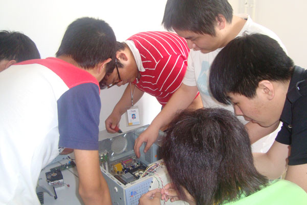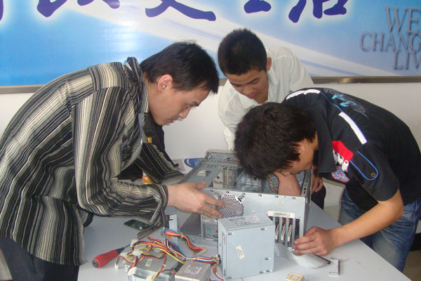 比賽一開始,朱老師就給參賽選手講解了比賽規則,演示了電腦裝機的流程和注意事項,緊張激烈的裝機比賽就開始了。比賽分四個小組進行,按照對電腦裝機的熟悉程度分配。比賽進行的異常激烈,各組的參賽選手都涌現出許多電腦裝機高手,復雜的電腦硬件安裝對他們來說簡直是手到擒來,其中更有選手在短短3分鐘之內就完成裝機,其他選手對他們佩服不已。