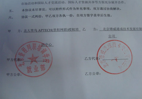 熱烈祝賀北大青鳥通州校區再與四家知名IT公司簽約合作協議