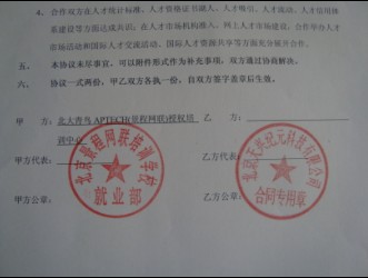 繼兩周前北大青鳥通州校區與新增四家企業簽約合作協議之后,經過就業部老師的努力和企業對我校教學質量的肯定,本周,北大青鳥通州校區再與兩家企業簽訂了《人才定向儲備合作協議》,正式與這兩家企業建立戰略合作伙伴關系。