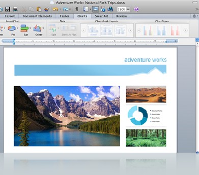 Office for Mac 2011的產品核心理念在于兼容、熟悉及專業。以保證Mac電腦上的微軟office用戶所處理的文檔可以和PC機完全兼容、相互協作共享。
