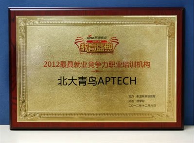 新浪網“中國教育盛典”已連續舉辦了五年,一直致力于為公眾呈現最具權威和公信力的榜單。北大青鳥APTECH作為緊貼互聯網發展潮流的IT職業教育機構,在涉及職業培訓、商學院、外語培訓、兒童教育等18個領域的參選機構中脫穎而出,綜合網絡口碑、媒體公信力和硬件實力,贏得網友、媒體和專家三個部分的投票,最終被評選為 “2012最具就業競爭力職業培訓機構”。