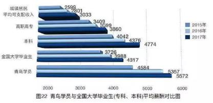根據(jù)《2017北大青鳥APTECH人才監(jiān)測(cè)報(bào)告》的數(shù)據(jù)我們得出,2016與2017年度,青鳥學(xué)員平均薪酬均比大專、本科院校畢業(yè)生高,尤其指出的是2017年本科畢業(yè)生的平均薪酬相比青鳥學(xué)員2016年的平均薪酬還稍遜色,可見青鳥學(xué)員的就業(yè)薪酬優(yōu)勢(shì)明顯!