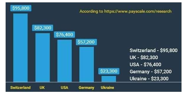 按國家/地區(qū):據(jù)美國勞工統(tǒng)計局(BLS)的報告,美國程序員平均年薪為101790美元,入門級程序員薪水范圍介于56000美元到85000美元間。