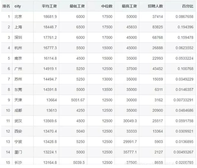 那接下來我們就分析一下“程序員的收入真的高嗎?”。其實(shí)在整個(gè)互聯(lián)網(wǎng)IT行業(yè)中,程序員的工資數(shù)據(jù)是非常透明的,而且每段時(shí)間都會有更新,沒有什么保密性可言。下面表中是2021年7月的程序員工資數(shù)據(jù),全國程序員平均工資是15302元,不同城市之間會有些差異,但這個(gè)差異并不是很懸殊。