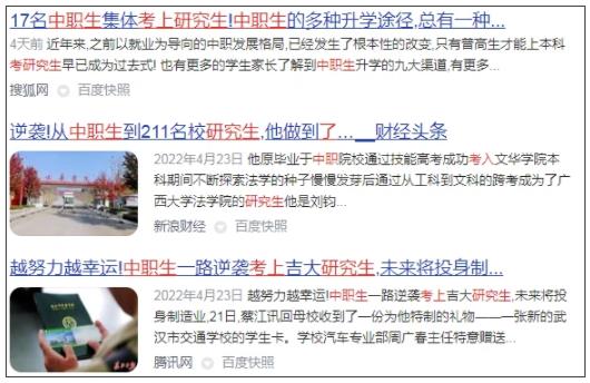 前段時間,一則“中專生考上研究生”的新聞火遍全網。在青島的一所職業學校中,已經有17名學生順利考上研究生,他們將在中國海洋大學、西安電子科技大學、青島大學等高校繼續深造。