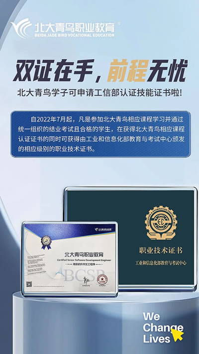 號外!北大青鳥學子可申請工信部認證技能證書啦!北大青鳥學員可獲“雙證”,助力前程無憂!