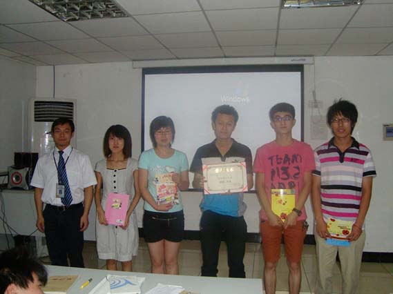 第一輪是必答題,每個小組成員都要參與,經過緊張的五輪較量,各小組分差不大,段春明和郭豪杰組以150分稍稍領先,丁嗣軒和王躍峰組緊隨其后。第二輪是風險題,分20分和40分兩種,答錯了要扣相應分值,但是每個小組為了能贏得比賽,爭先搶高分值題目,賽場不時傳來陣陣掌聲。最后一輪的猜詞題,關鍵看兩個隊員的默契程度,一個人比劃一個人猜,王江濤和張舵配合默契,八個詞語全部猜對,不時贏得觀眾的掌聲。經過近兩個小時的緊張較量,最終段春明組以360分奪得第一名,丁嗣軒組以340分獲第二名,王江濤組以320分獲得第三名。通過此次比賽,學員不僅把之前學的知識得到鞏固,而且增強了每個小組的凝聚力,為以后的學習打下基礎。