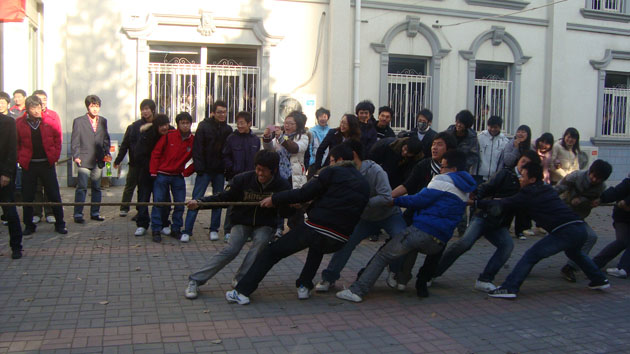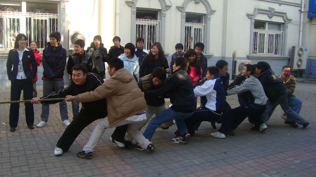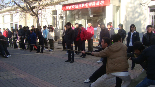 為了使各班同學(xué)更好地相互了解,增進同學(xué)之間的友誼,我校在11月,開展了激烈的拔河比賽。